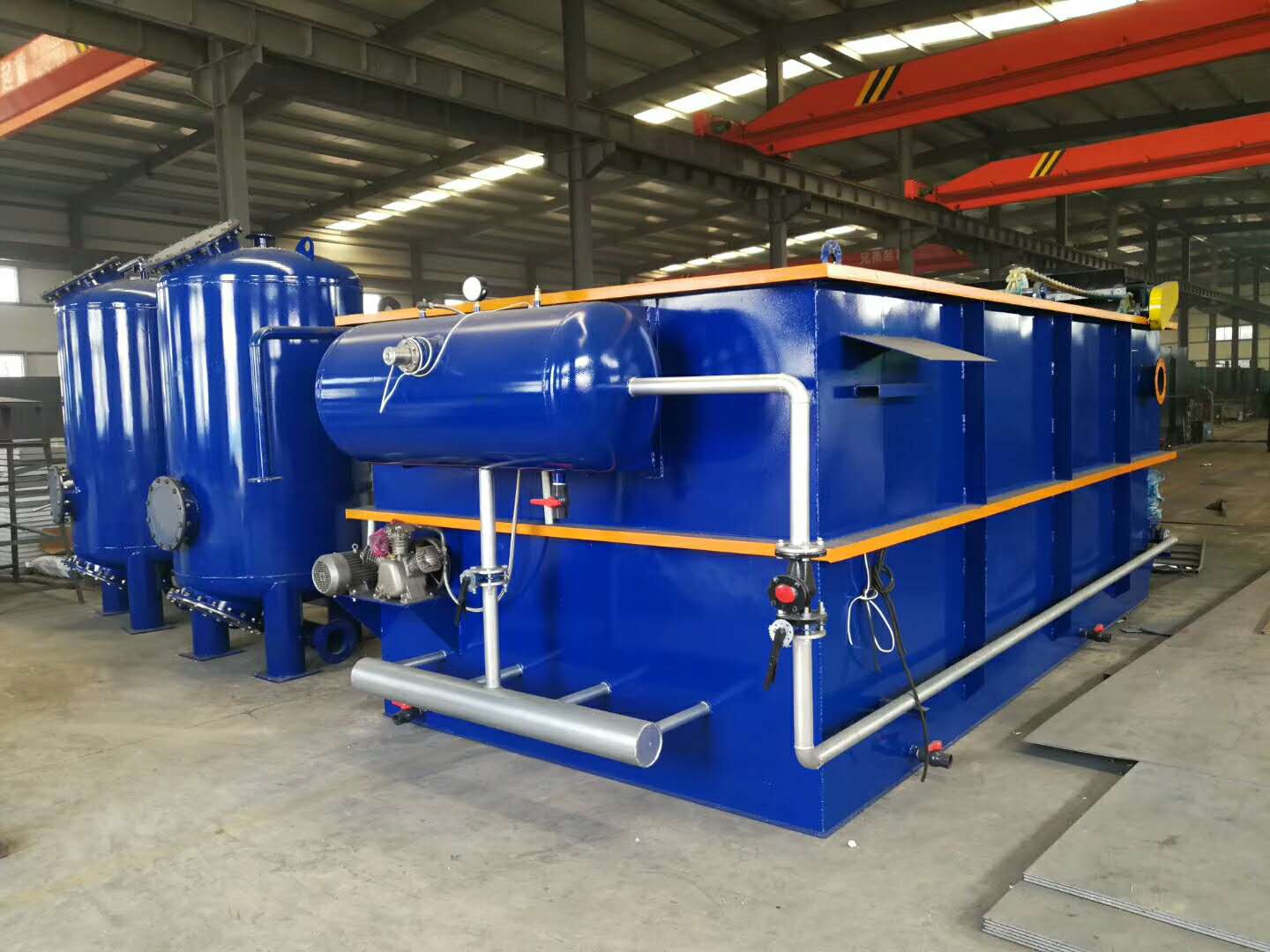 處理能力大、效率高、占地少,去除水中的懸浮物及不可溶性COD,加入破乳劑去除水中的動物油,去除血色,工藝過程及設備構造簡單,便于使用、維護。